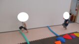 片足クマで平均台を越えて行きます。競争となると気持ちがついつい焦ってしまいがちですが、