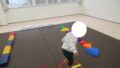 動物や数字のカードをめがけてボール当てをしました。