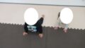 バランスボードに乗ったままボールを捕ったり投げたり~。