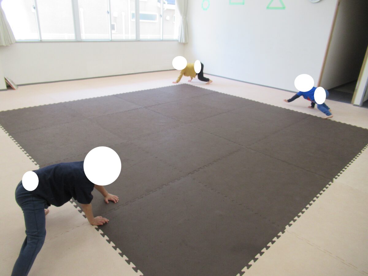 体をリラックスさせましょうね!ゆっくり柔軟してからかっこいい動物に変身!