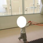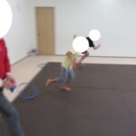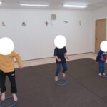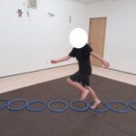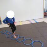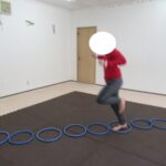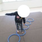 長いフープ道に挑戦!最後までフープを崩さずにケンケンできましたね。すごい!