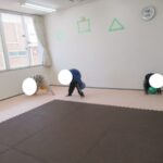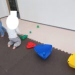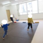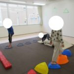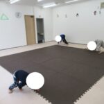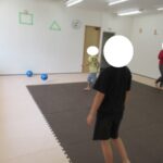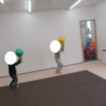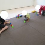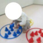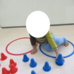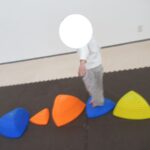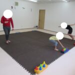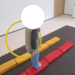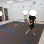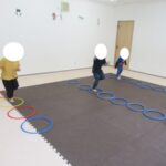カラー石バランス渡り、マット坂、フープジャンプ、平均台渡りをしました。