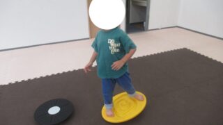 こんにちは元気なお友達が遊びに来てくれました!忍者のような素早い動きを目指しながら、今日も楽しく取り組んでいきたいと思います。★バランスボード左右のバランスや足の位置などに気をつけてボードに乗ります。体幹トレーニングに最適なボードです。★壁...