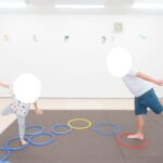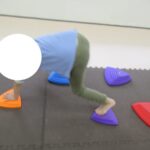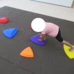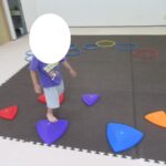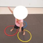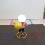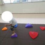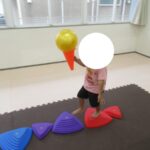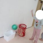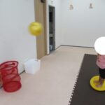 ボール入るかな?入った~!次はバランスボードに乗って挑戦です!