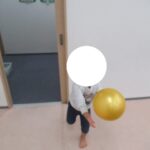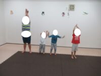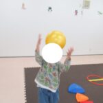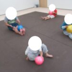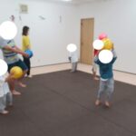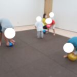 自分のスペース内でボールキャッチ、ボール柔軟などをしました。教室にはボールが大好きなお友達がたくさんいます!ニコニコでボール遊びを楽しみましたね。