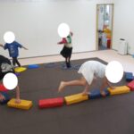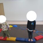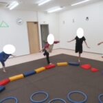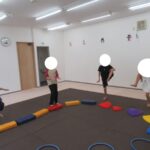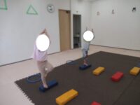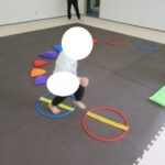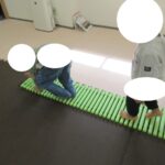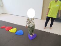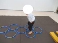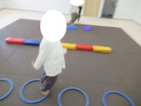 平均台→フープ→カラー石を並べてロングロードが完成!!さあ渡ってみよう~♪