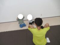 パーソナルスペース(限られた場所)でボール遊びを楽しみました。自分の陣地を出ないように遊びましょう!