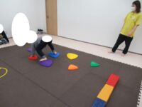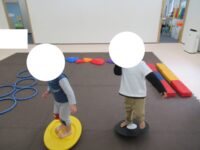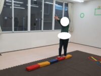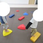 バランスボード、平均台クマ渡り、カラー石渡りなどに挑戦。今日もバランスを取ってクリアできました♫