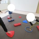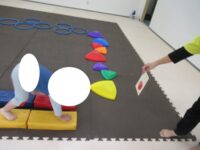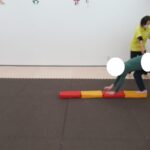 動物変身をしながら合図を聞いてカラー石やフープにお引越し。移動をする時は落ちないように気をつけてね。