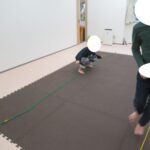 カニ綱渡り、ぶちぶちボール越えをしたり、縄移動をしたり楽しく動くことができました。