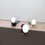 カニさんポーズで横歩き。腰をしっかり落として重心を下に意識。とても難しいこの歩き方を子どもたちは一生懸命練習しています!
