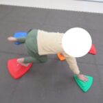 今日も元気よくお友達が来てくれました。今週は間隔とび石という運動を行います。体幹強化にもってこいの運動です。楽しみながら頑張りましょう!