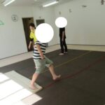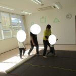 ストレッチやボール挟みジャンプ、ボールシュートなどに挑戦しました。
