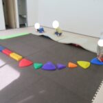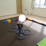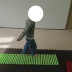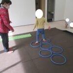 しっぽ取りのしっぽを並べて歩いてみたり、線の上を意識しておにごっこにも挑戦してみました。
