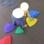 カンガルージャンプ、サイドステップをしたらカラー石でポーズ!