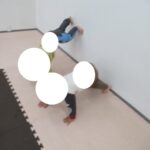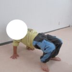 初めての壁倒立に挑戦するお友達。かっこいい手本も見せてくれました。