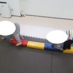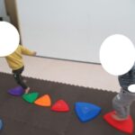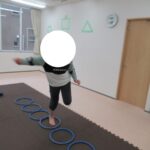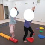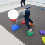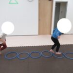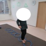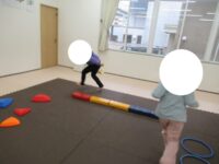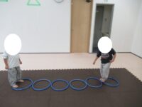 フープでは両足ジャンプ、カラー石では落ちないように気をつけながら進めました。