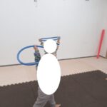 先生の真似っこに挑戦。真っすぐフープをもって出発~!