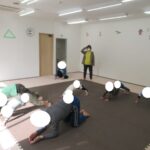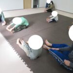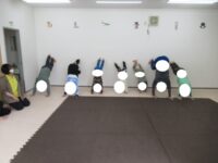 柔軟をしっかりとしてから動物変身へ切り替えました。かっこいい動物さんに変身!カメ、アザラシ、クマになりました。