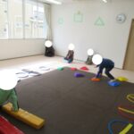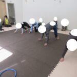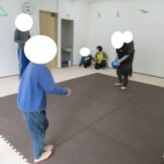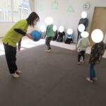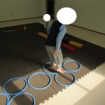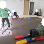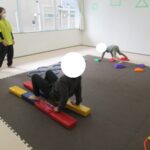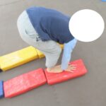 平均台、フープ、方向転換ジャンプ、カラー石クライミングで楽しく回りました。丁寧にクマ歩き、フープの中をジャンプ、落ちないようにクライミング…かっこよくできましたね。