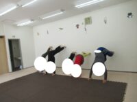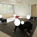 お腹や背中に力を入れてキープしたり、カエルの足裏打ちにも挑戦しました!