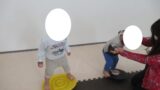 アヒル歩きでコーンタッチ、一本橋でカニ歩き、カラー石でクマ歩き、フープで連続ジャンプをしました。