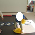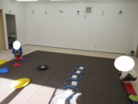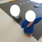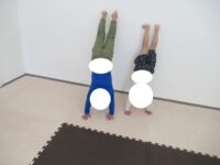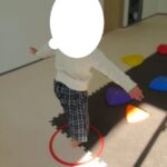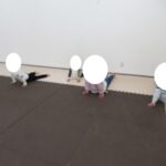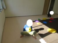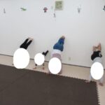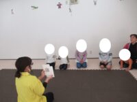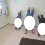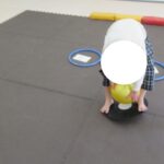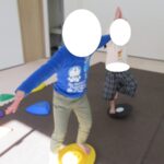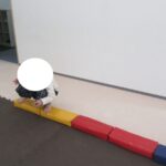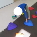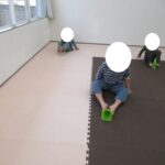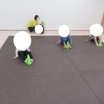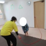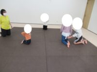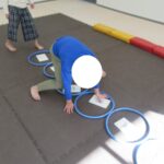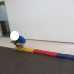 平均台でカニ歩き、フープでクマ歩きをしながらカード読み、バランスボード、カラー石クマ歩きをしました。