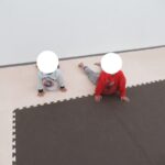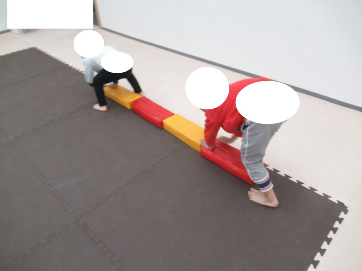 ゴールは平均台。お尻歩きで歩きましょうね。
