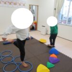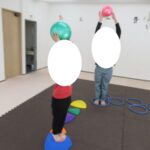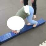 片足クマ歩きに挑戦!平均台を落ちずに渡ることができました。