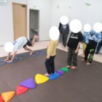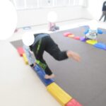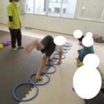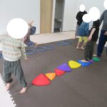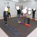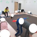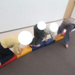 片足クマ歩きをいろいろな場所で行いました。途中、カニ歩きにも挑戦!!動物変身もスムーズに行うことができていました。