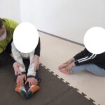 体をほぐしてからスタート!ちょうちょう、アザラシなど体を伸ばしていきましょう。