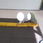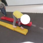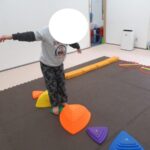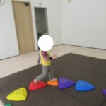 高低差のあるカラー石渡りや、バランスボード、方向転換ジャンプ、横クマ歩きをしました!