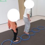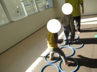走ったり、クマ歩きして…先生の合図でフープへGO!