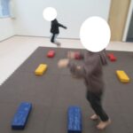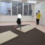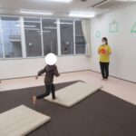 後ろへ向かってジャンプ!ちょっぴり怖いけれど頑張って挑戦してみました!