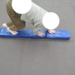 後方バージョンでクマ歩きもできました。普段しっかりとクマ歩きをしているので応用もすぐにできました。