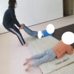腹筋に力を入れながら足クレーンで持ち上げよう!