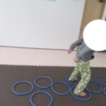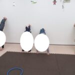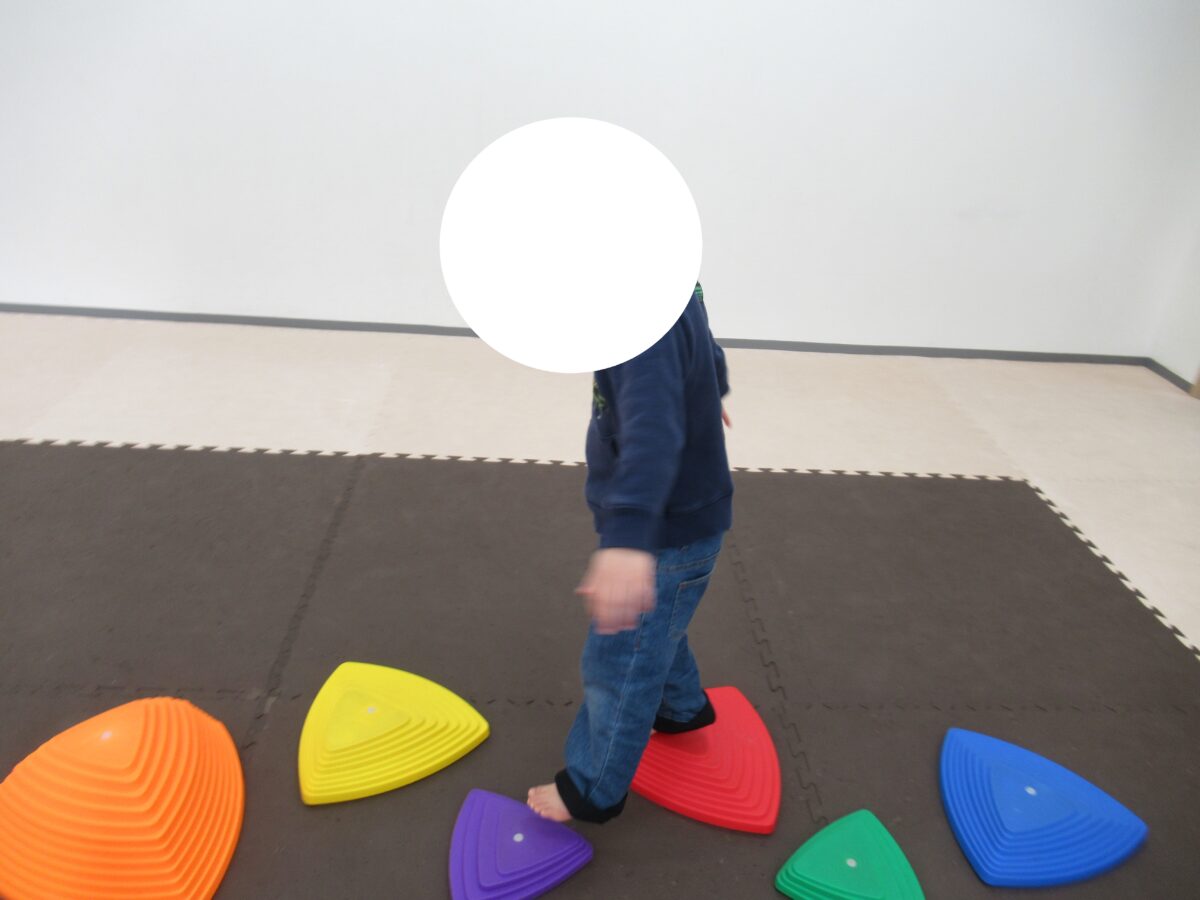 カラー石でバランス渡り、マット山でクマ歩き、一本橋でもクマ歩きを頑張りました!