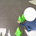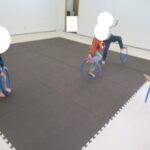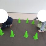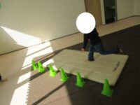 アヒルさんでコーンタッチ♬バランスキープして進むことができました。