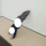 壁倒立は、足を揃えることに気をつけながら頑張りました。
