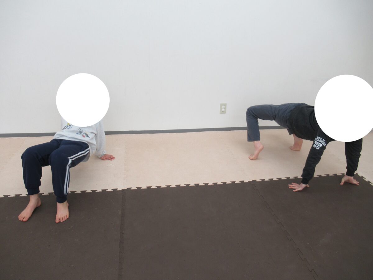 先生と逆のポーズができるかな?みんな考えながら逆グーパー頑張りました。