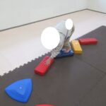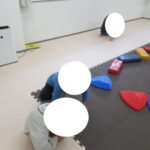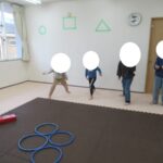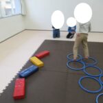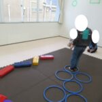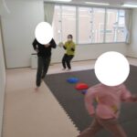 タンバリンの音を聞いて座ったり、走ったり、止まったり、体をコントロールしていきました。