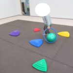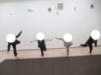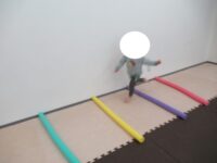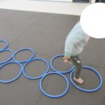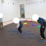 フープや平均台、カラー石と動き方や順番を守って進めました。