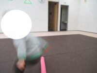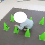 カラー石や一本橋でクマ渡り、後ろ向きフープジャンプ、アヒル歩きでコーンタッチをしました。