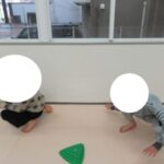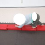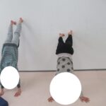 アヒル歩きでしっかり足首を使って進んでみようね。お友達にあったらジャンケンポン♬