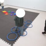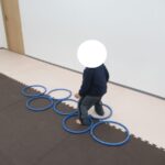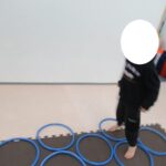 フーパージャンプでピョンピョンピョン♬テンポよく、リズムに乗って!フープに足が触れないように気をつけて進むことができました。
