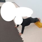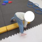 ジグザグ平均台の上を歩くのは難しいのですが、さらにレベルアップ!!クマ歩きでジグザグに挑戦♬