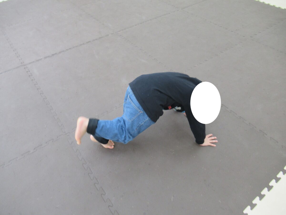 クマ歩き、片足クマ歩きに挑戦!難しい動きですが頑張ってクリア♫