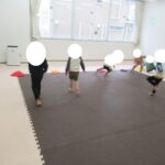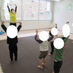 先生の真似をしてポーズ!前後ジャンプも数を数えて跳べましたね。