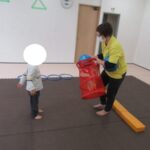 ボールを上手にコントロールして的当てできるかな?お友達へのパスでは、力の入れ方や投げ方に気をつけて頑張りました。