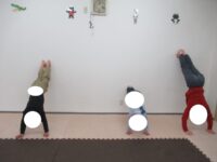 バランスボードでは一周まわってみたり、平均台カニ歩きや横クマ歩きなど、様々な動きで体を動かしていきました。